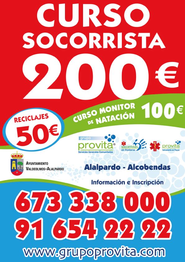 Apúntate al Curso de Socorrismo impartido por PROVITA los días 7, 8 y 9 de abril en Alalpardo y los días 10, 11 y 12 de abril en Alcobendas, en la piscina cubierta de Valdelasfuentes.