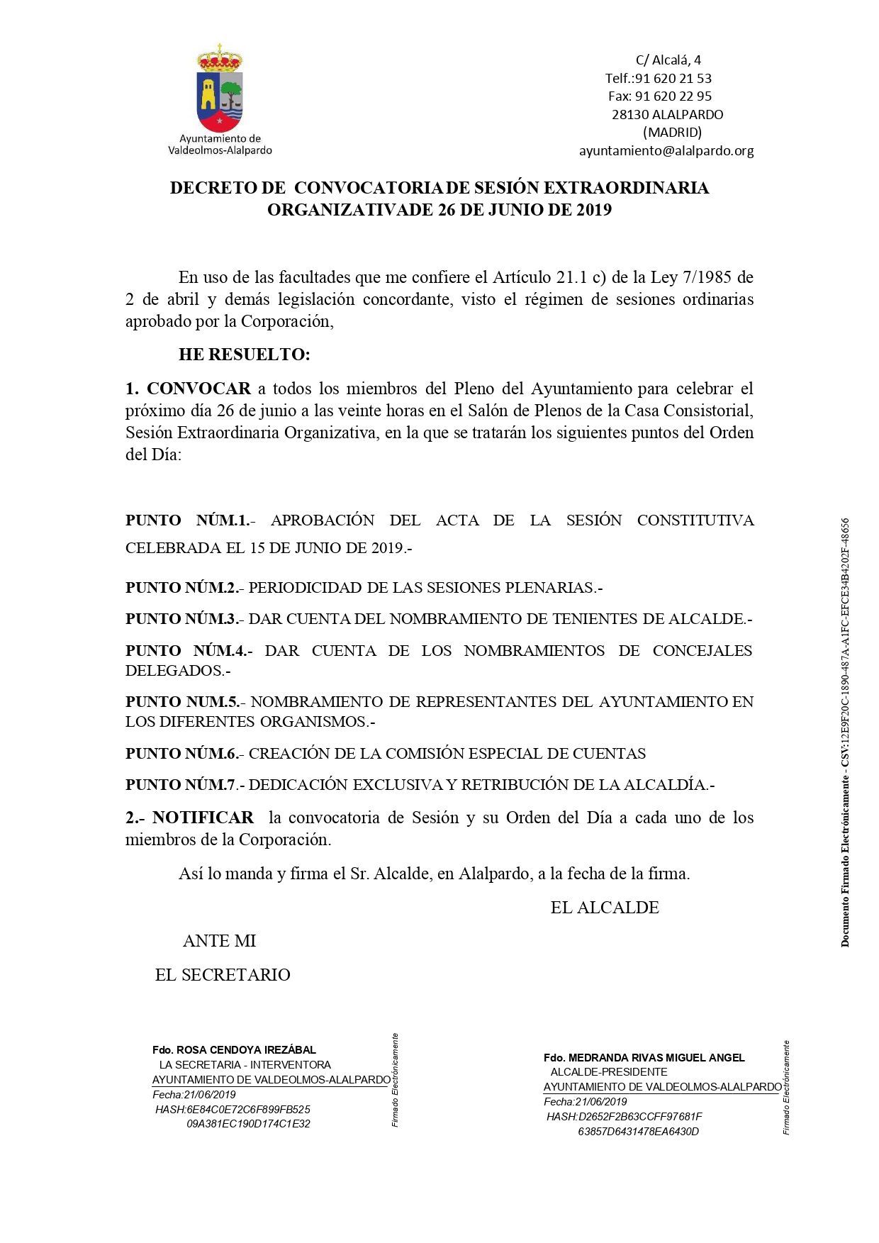 Decreto de Convocatoria del Pleno Extraordinario