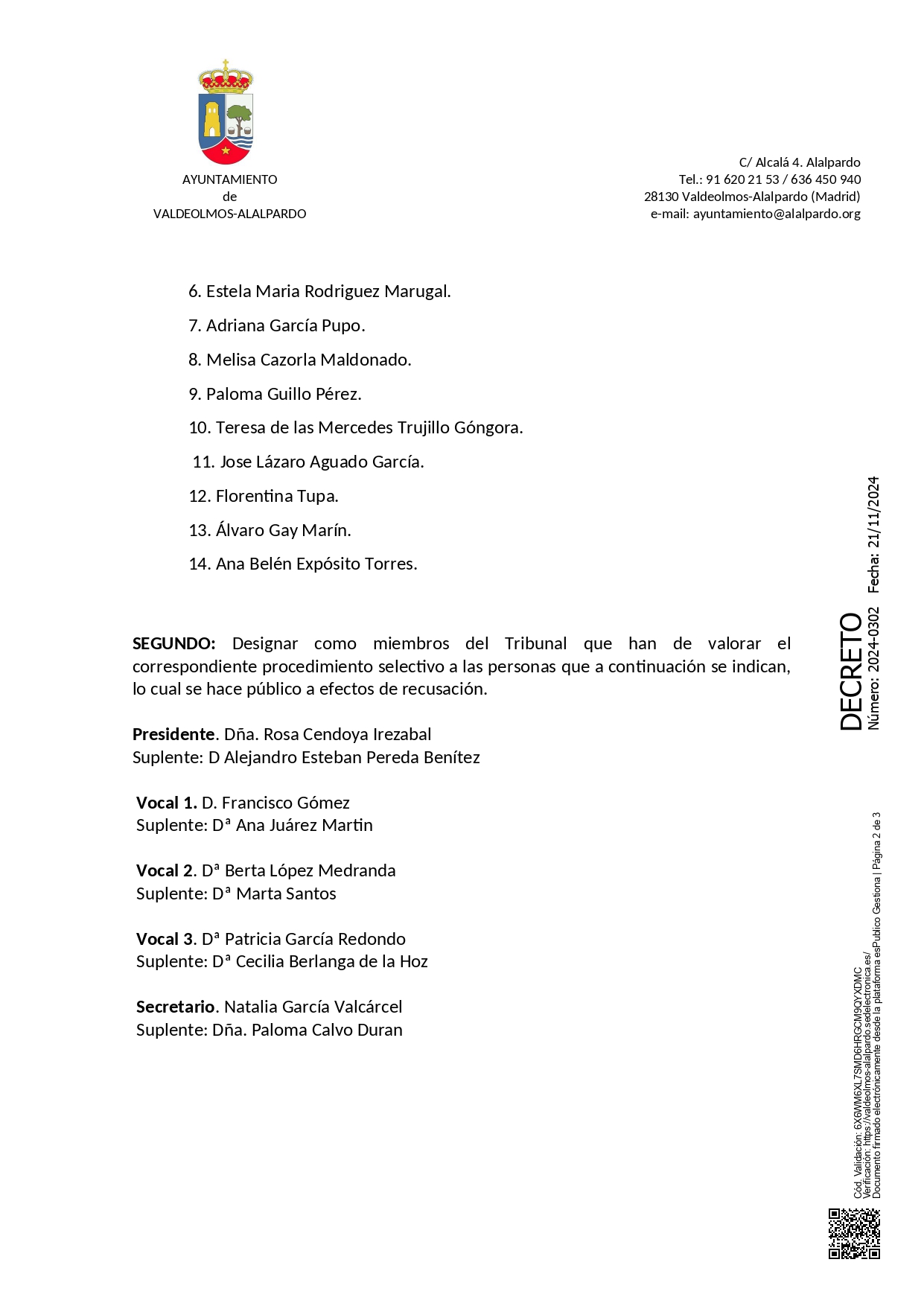 Decreto de Alcaldía sobre Bolsa de Empleo – Operarios de Limpieza Viaria