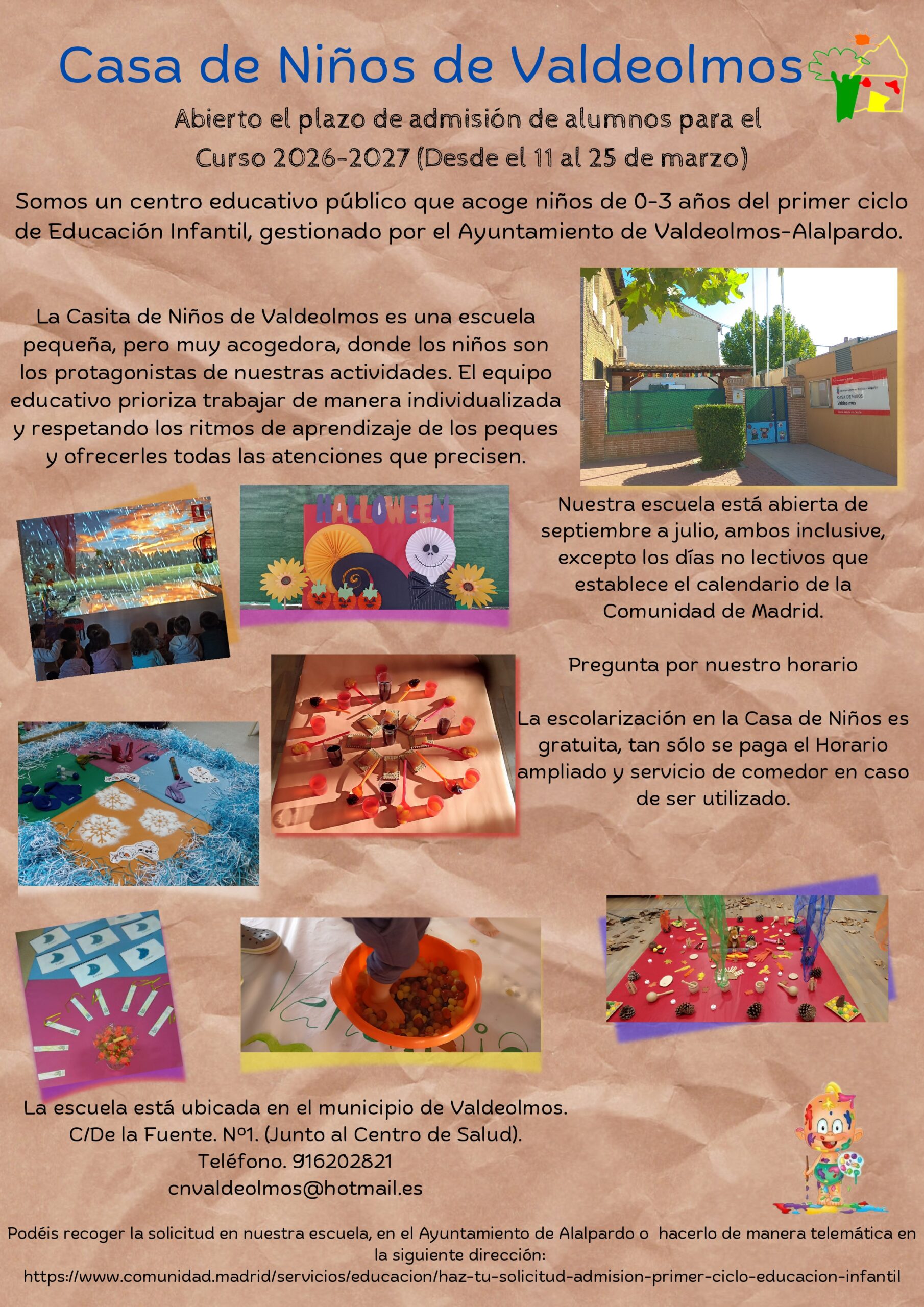 Del 11 al 25 de marzo: Proceso de admisión en Casa de Niños de Valdeolmos – Curso 2026/27