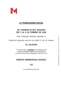 La Trabajadora Social no atiende en nuestro municipio 2, 3, 4, 5 y 6 de febrero.