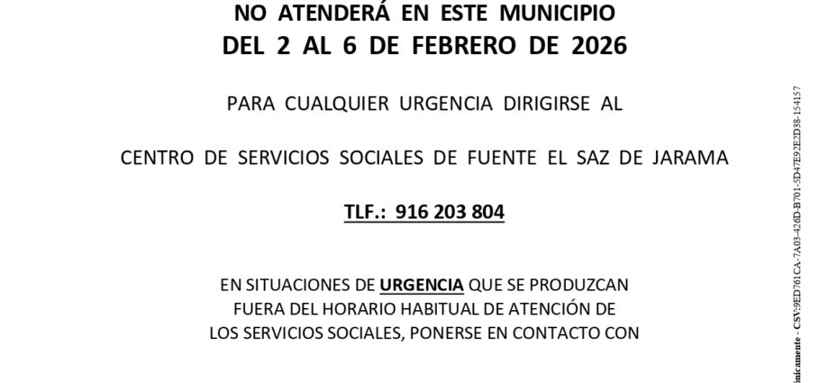 Para cualquier emergencia hay que dirigirse al Centro de Servicios Sociales de Fuente El Saz.