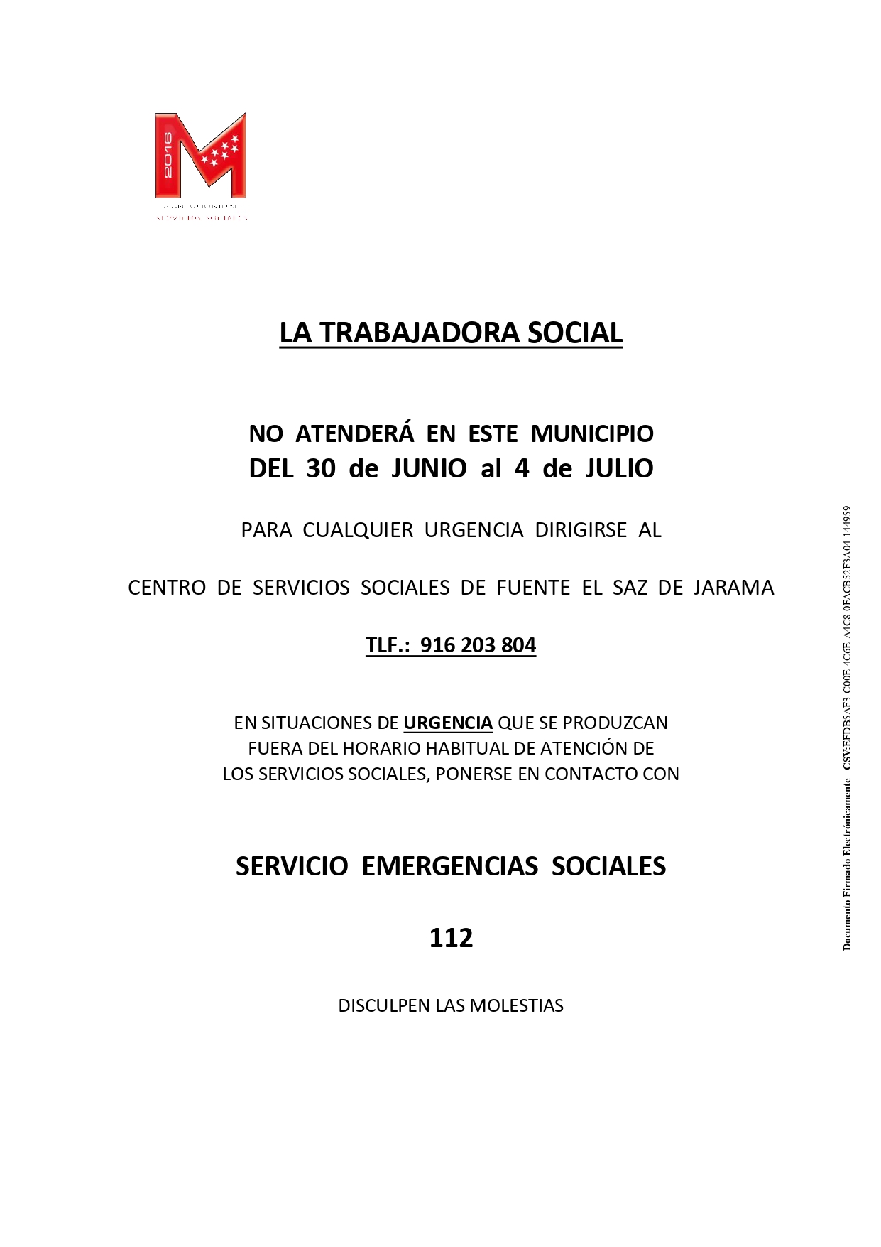 Del 30 de junio al 4 de julio: Sin servicio de la Trabadora Social » Trabajadora social