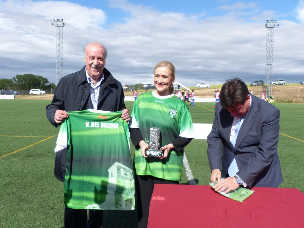 Después de alabar al alcalde del municipio, Miguel Angel Medranda, con un «Pero qué bonito tienes el pueblo, alcalde», se dirigió al Campo de Fútbol donde no dudó en quitarse abrigo y pañuelo para ponerse la camiseta y bufanda del C.F. Alalpardo. Con el público en el bolsillo, la Presidenta de la Comunidad de Madrid, hizo el saque de honor dando comienzo al II Torneo de Fútbol Cadete Vicente del Bosque.