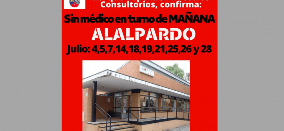 No habrá médico en Alalpardo en turno de mañana los siguientes días de julio:
