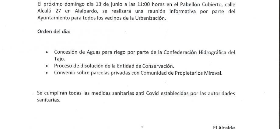 13 de junio: Reunión para todos los vecinos de Miraval.