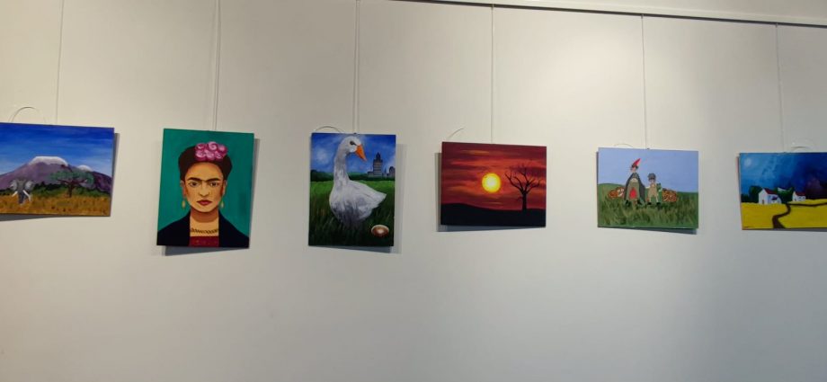 Trabajos de pintura de 14 niños y niñas de entre 6 y 14 años expuestos en la Sala Al-Artis