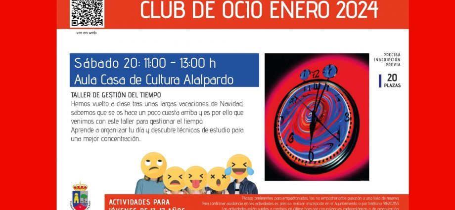 - Sábado 20: TALLER DE GESTIÓN DEL TIEMPO