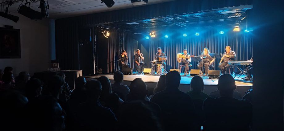 El guitarrista era la segunda vez que demostraba su arte en el municipio. También en esta ocasión y junto a los bailaores, cantaora, percusión, saxo y bajo ofrecieron un espectáculo con mayúsculas en el Sara Baras de Valdeolmos.
