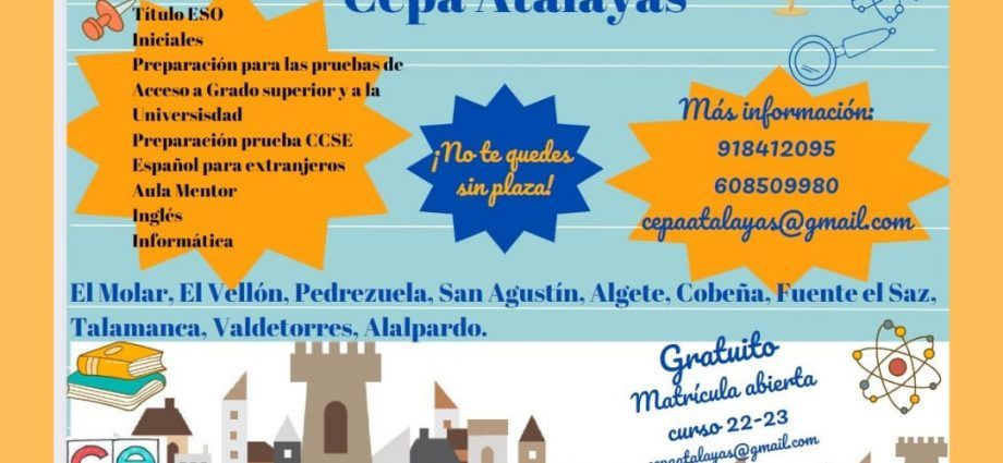 Curso 2022-2023. Enseñanza gratuita para adultos con Cepa Atalayas.