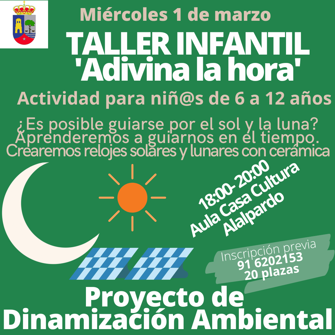 Taller infantil ‘Adivina la hora’ 1 de marzo de 18:00 a 20:00 horas en el Aula de la Casa de la Cultura de Alalpardo