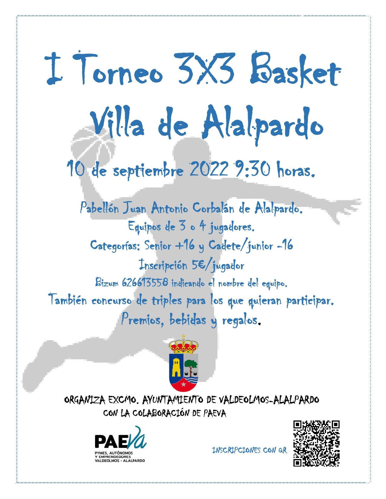 El 10 de septiembre a las 9:30 horas se juega el I Torneo 3×3 Basket Villa de Alalpardo en el Pabellón Juan Antonio Corbalán.