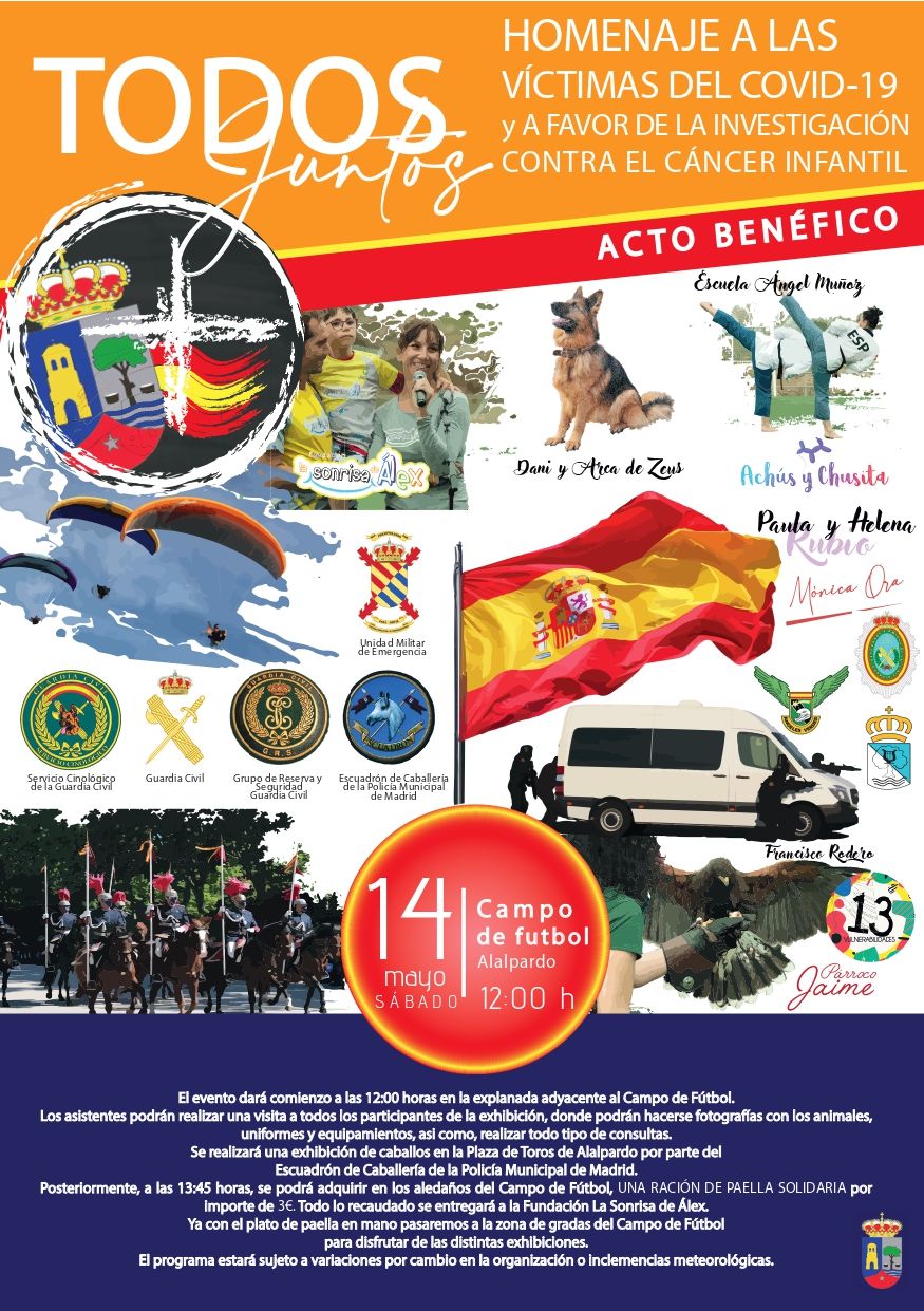 ‘Todos Juntos’ es un Acto benéfico homenaje a las víctimas de Covid a favor de la investigación contra el cáncer infantil. Se celebrará el 14 de mayo en el Campo de Fútbol de Alalpardo.