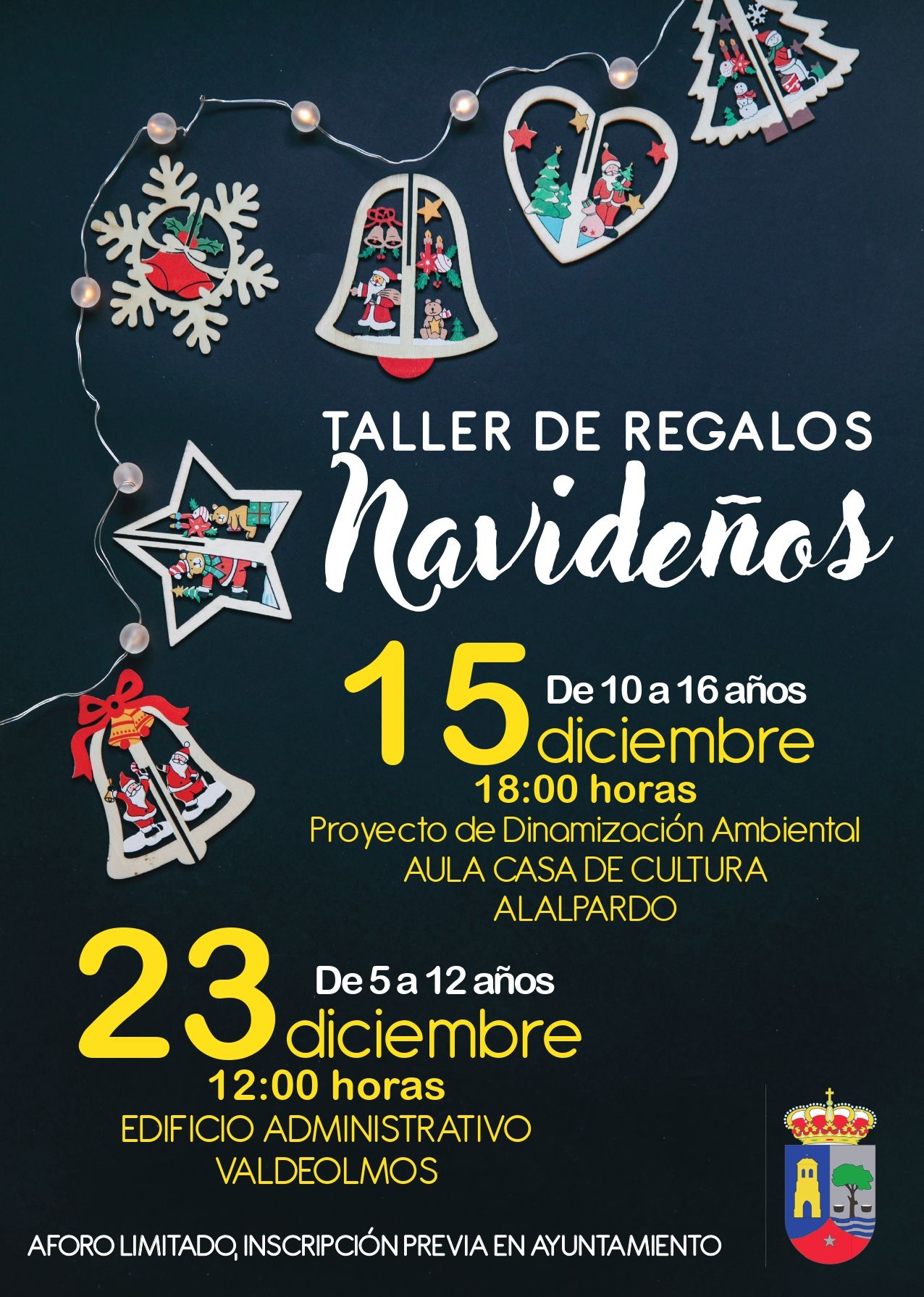 Como cada año se realizarán 2 talleres de manualidades para los niños del municipio, donde con sus propias manos crearán regalos para su árbol de Navidad.
