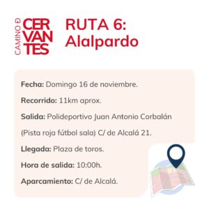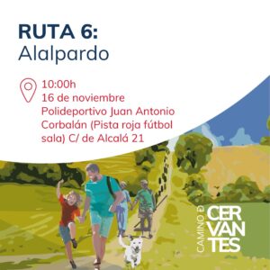 El domingo 16 de noviembre le toca el turno a Alalpardo. A las 10:00 horas sale de la pista roja del Polideportivo Municipal Juan Antonio Corbalán en Alalpardo. ¿Preparad@ para andar 11 kilómetros? Caminar es salud.
