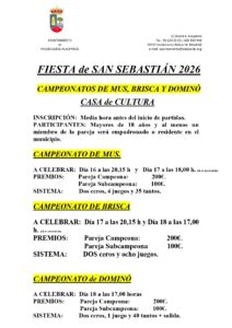 16,17 y 18 de enero: Campeonato de Mus, brisca y dominó – Fiestas de San Sebastián 2026