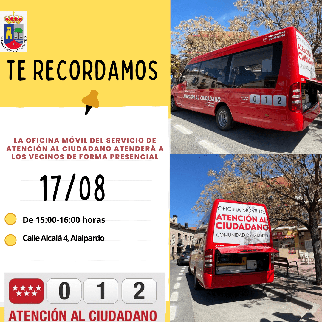 La Oficina Móvil de Atención al Ciudadano nos visita el 20 de julio de julio