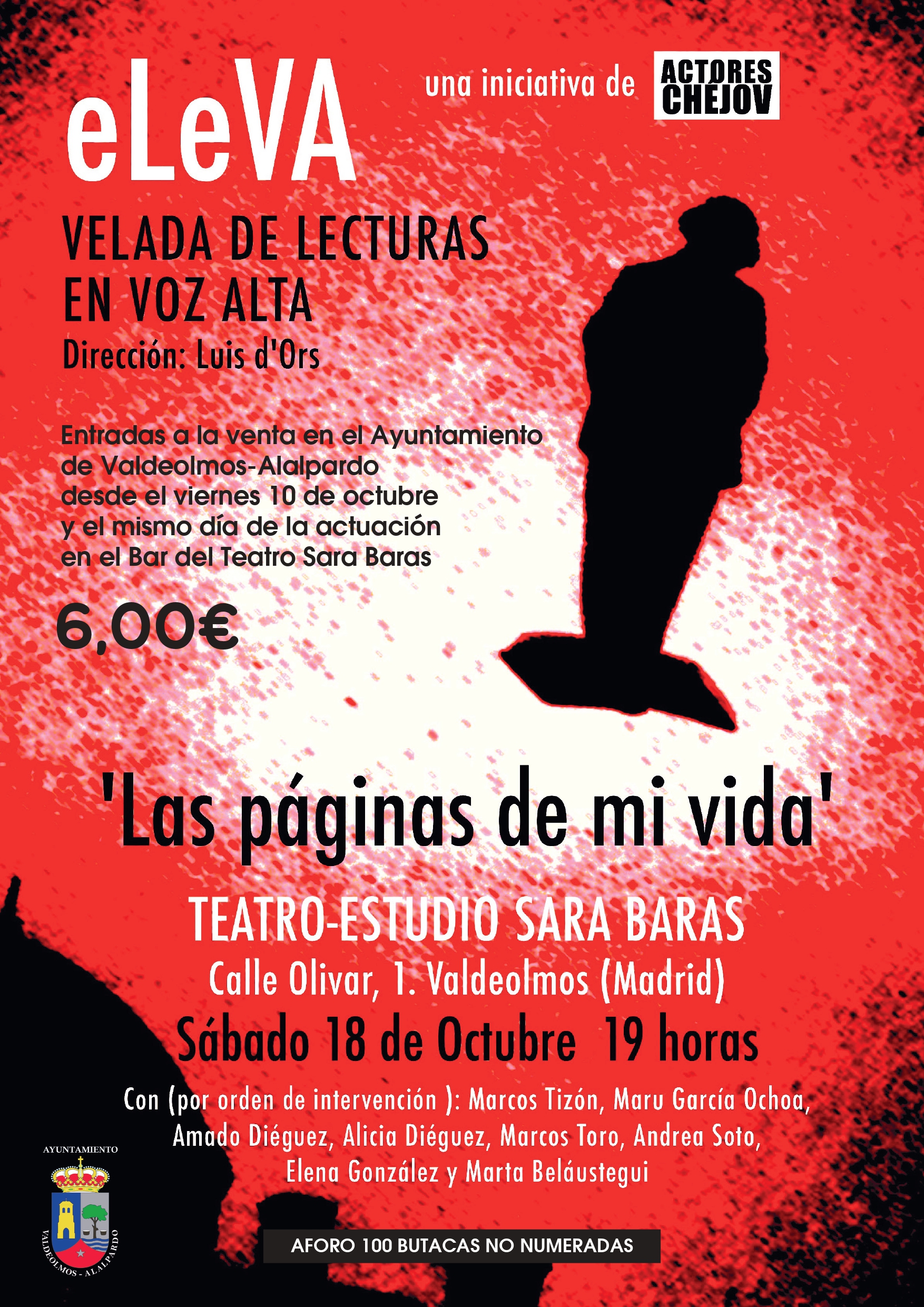 « Todos los Eventos 18 de octubre: Velada de lecturas en voz alta – Las páginas de mi vida’ 18/10/2025 @ 19:00 - 20:00 6€ « 18 de octubre: Taller teórico práctico sobre Marcha Nórdica 24 de octubre: Charla sobre ‘Contabilidad sin dolor’ » ‘Las páginas de mi vida’ es una velada de lecturas en voz alta Entradas a la venta en el Ayuntamiento desde el viernes 10 de octubre y el mismo día de la actuación en el Bar del Teatro Sara Baras Sábado 18 de octubre 19:00 horas Teatro Estudio sara Baras C/ Olivar 1, Valdeolmos Una iniciativa de Actores Chejov con dirección de Luis D’Ors Precio: 6 € CARTEL_LAS PÁGINAS DE MI VIDA + Google Calendar+ Agregar a iCalendar Detalles Fecha: 18/10/2025 Hora: 19:00 - 20:00 Precio: 6€ Etiquetas del Evento:lecturas, Sara Baras, teatro, valdeolmos, voz alta Local Teatro-Estudio Sara Baras C/ Olivar 1, Valdeolmos 28130 + Google Map 2025-10-08
