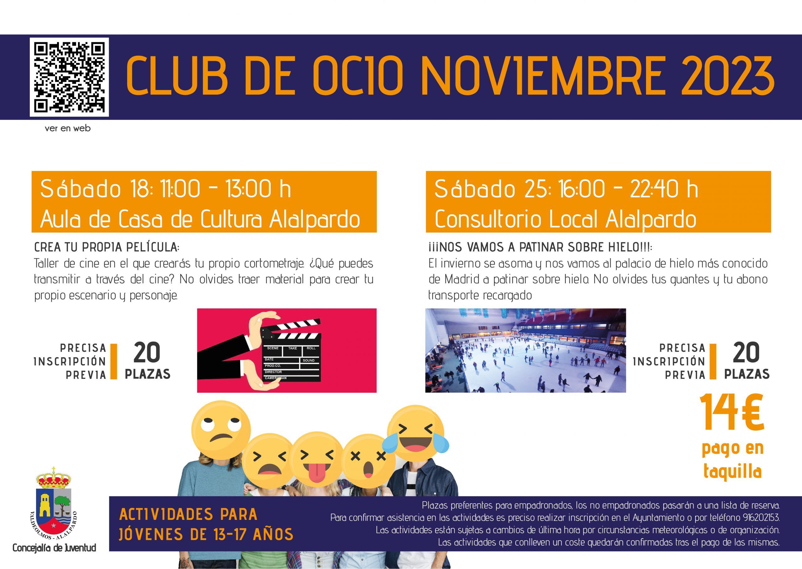 El 18 y 25 de noviembre hay actividades del Club de Ocio