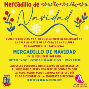 - Para participar en el Mercadillo es necesario ponerse en contacto con la Asociación Acode Jarama antes del 12 de diciembre market@acodejarama.org