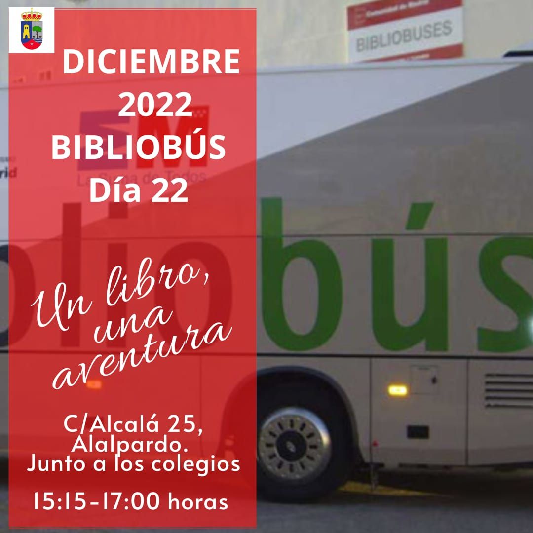 El 22 de diciembre vuelve el Bibliobús al municipio. Como siempre, cargado de revistas, libros, cómics, CD, y DVD. Te espera en la Calle Alcalá 25 junto a los colegios, de 15:15 a 17:00 horas.