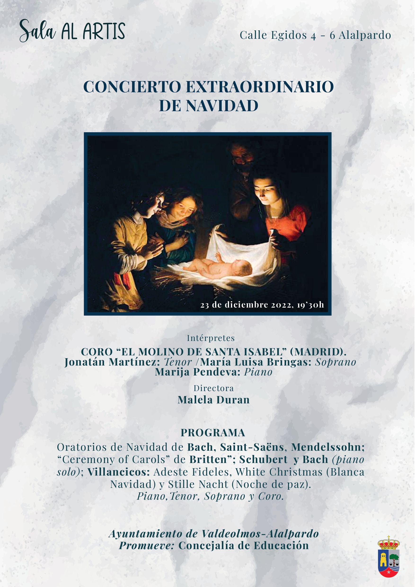 Concierto Extraordinario de Navidad a cargo del Coro ‘ El Molino de Santa Isabel’ de Madrid el viernes 23 de diciembre en la Sala Al-Artis