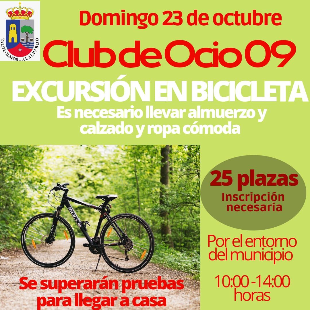Nueva actividad del Club de Ocio 09′: ‘EXCURSIÓN EN BICICLETA POR EL ENTORNO DEL MUNICIPIO’ el domingo 23 de octubre.