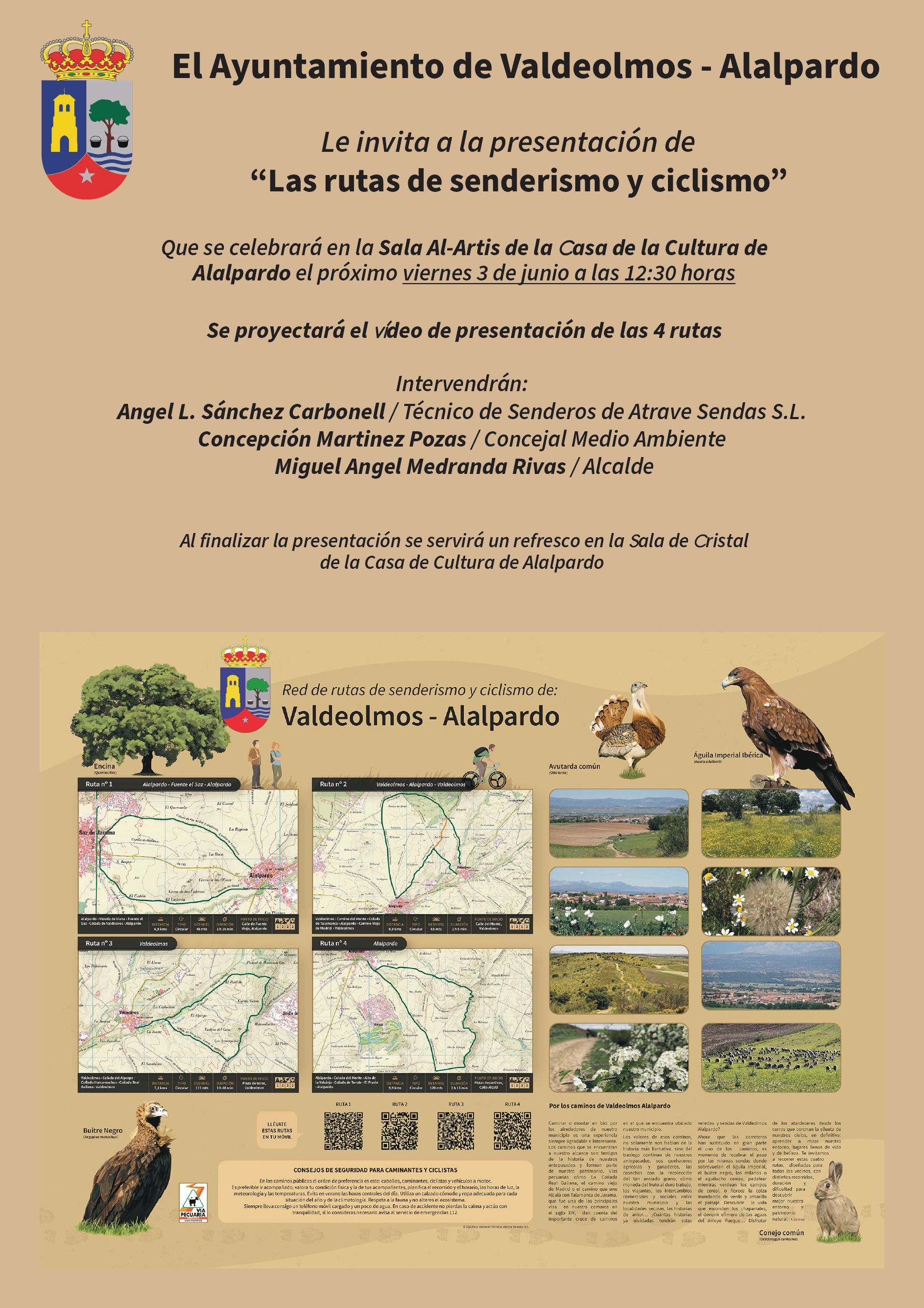 Presentación de las cuatro rutas de senderismo y ciclismo de Valdeolmos-Alalpardo el 3 de junio en la Sala Al-Artis a las 12:30 horas.