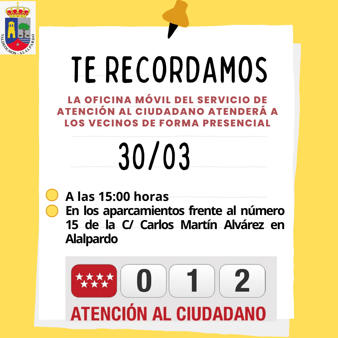 30 de marzo: La Oficina Móvil del Servicio de Atención al Ciudadano te atiende de forma presencial