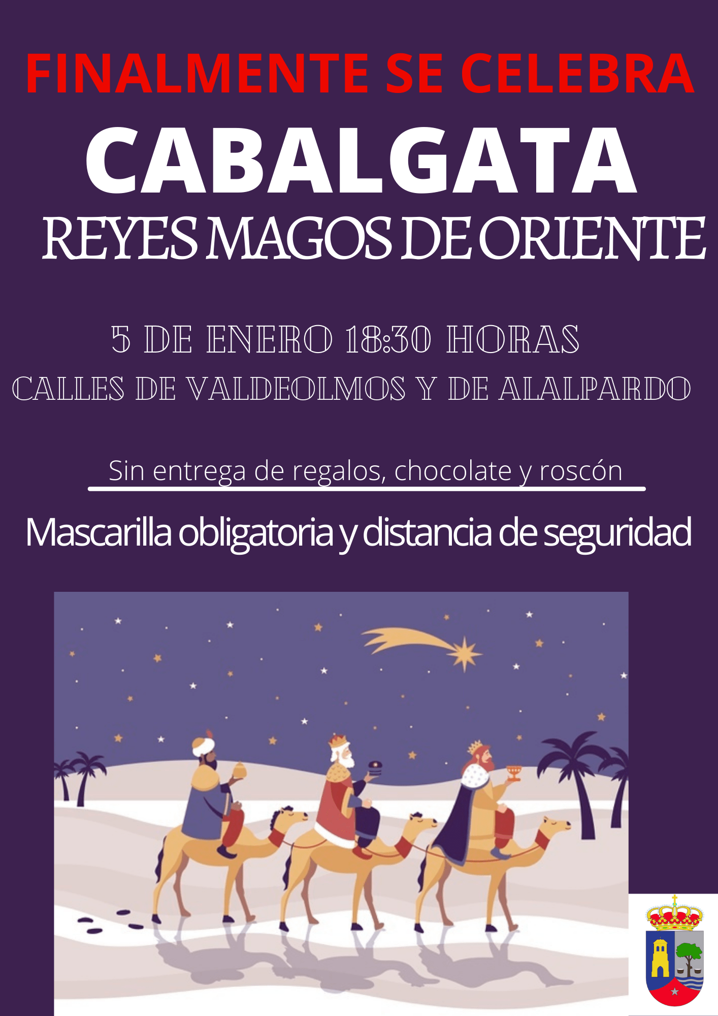 Aunque la programación navideña se suspendió el 23 de diciembre, los Reyes Magos de Oriente sí recorrerán las calles de Valdeolmos y de Alalpardo. No habrá fiesta de epifanía ni tampoco entrega de regalos, roscón y chocolate.