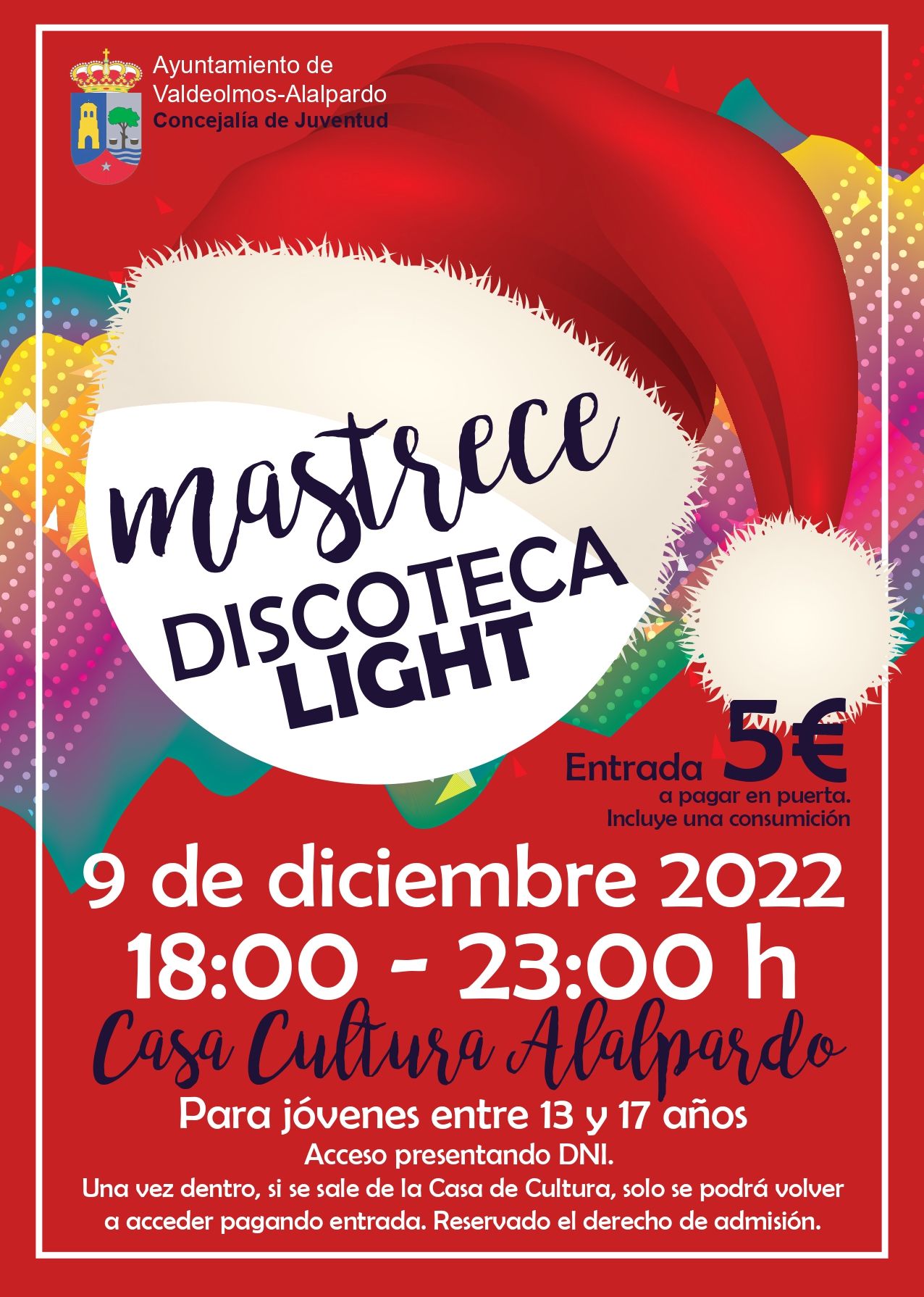 Discoteca light con temática navideña para jóvenes de entre 13 y 17 años. Se pide a los asistentes llevar alguna prenda roja y/o un gorro de Papa Nöel.