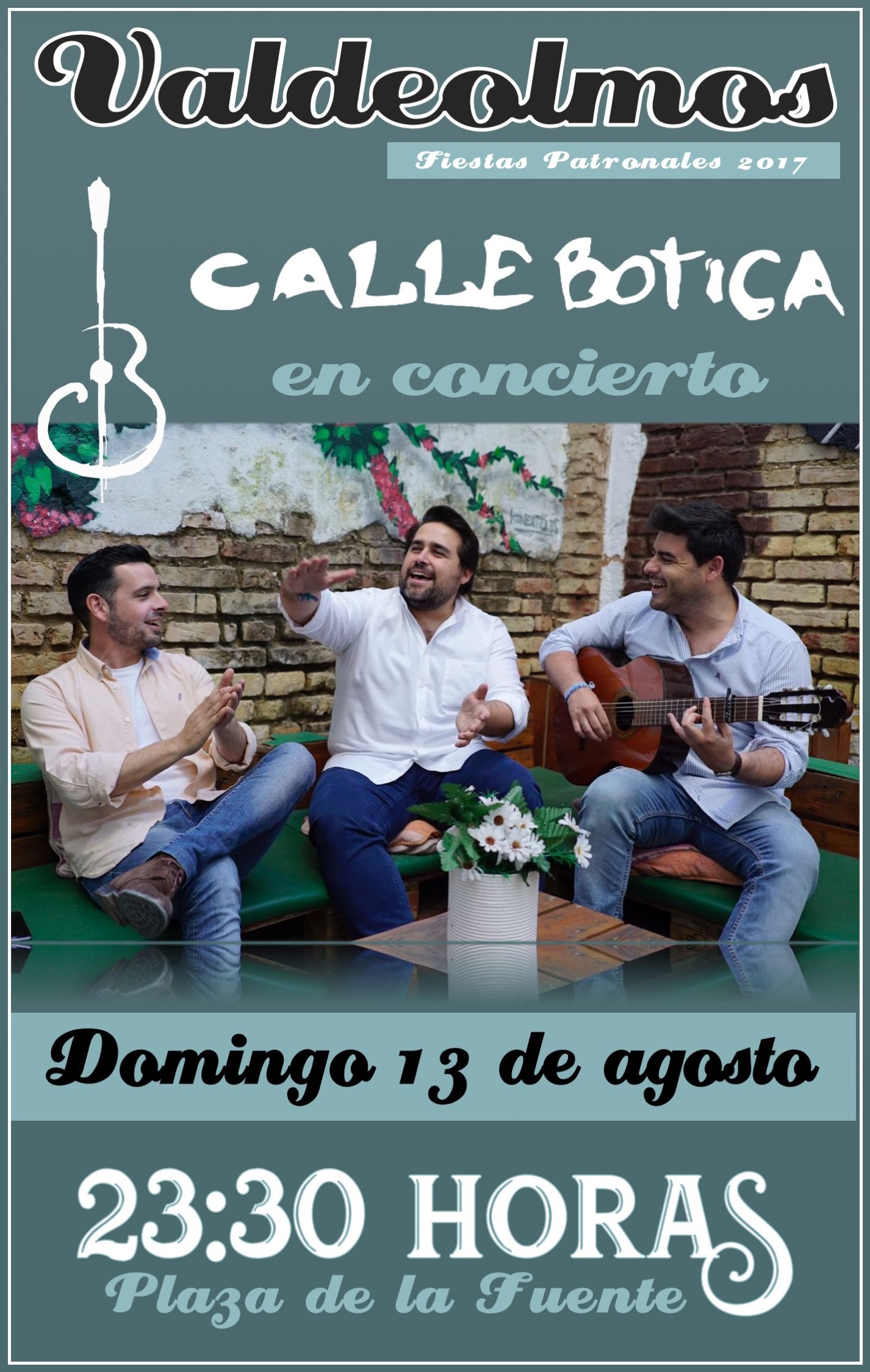 Si quieres ve a tu grupo de flamenquito ‘Calle Botica’ en concierto, tendrás que ir a las Fiestas Patronales de Valdeolmos el lunes 13 de agosto en la Plaza de la Fuente.