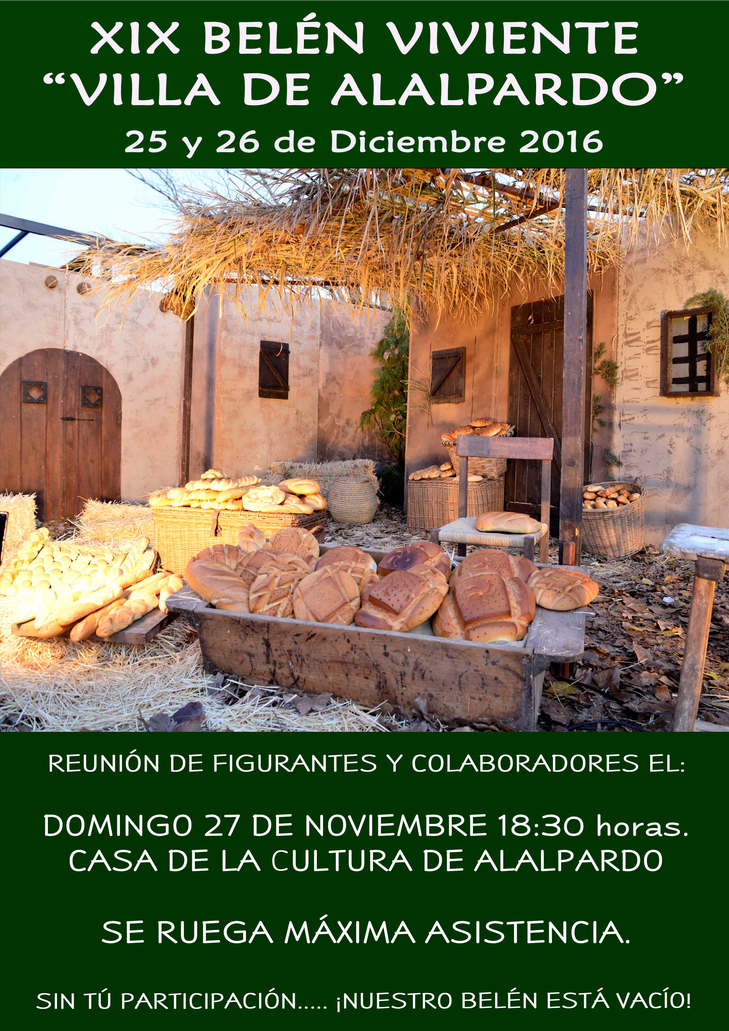 Se convoca una reunión de Figurantes y Colaborades del XIX Belén Viviente Villa de Alalpardo el 27 de noviembre a las 18:30 en la Casa de la Cultura.