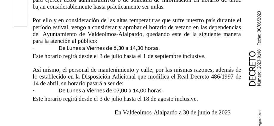 Decreto de Alcaldía con el nuevo horario para atención al público y mantenimiento por las altas temperaturas