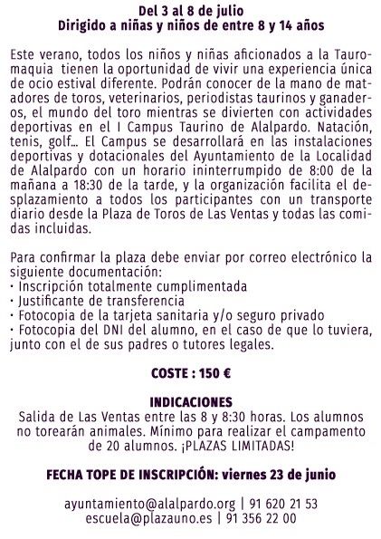 I Campus Taurino para niñ@s de entre 8 y 14 años » Flyer2
