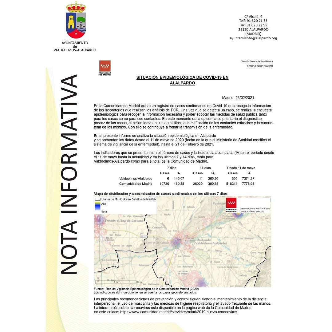 Vuelven a descender los casos de covid según el Informe Epidemiológico a fecha 21 de febrero