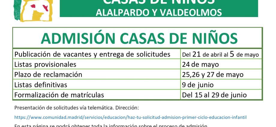 El 26 de abril tendrá lugar la jornada de puertas abiertas en la Casa de Niños de Alalpardo de 16:45 a 18:30 horas.