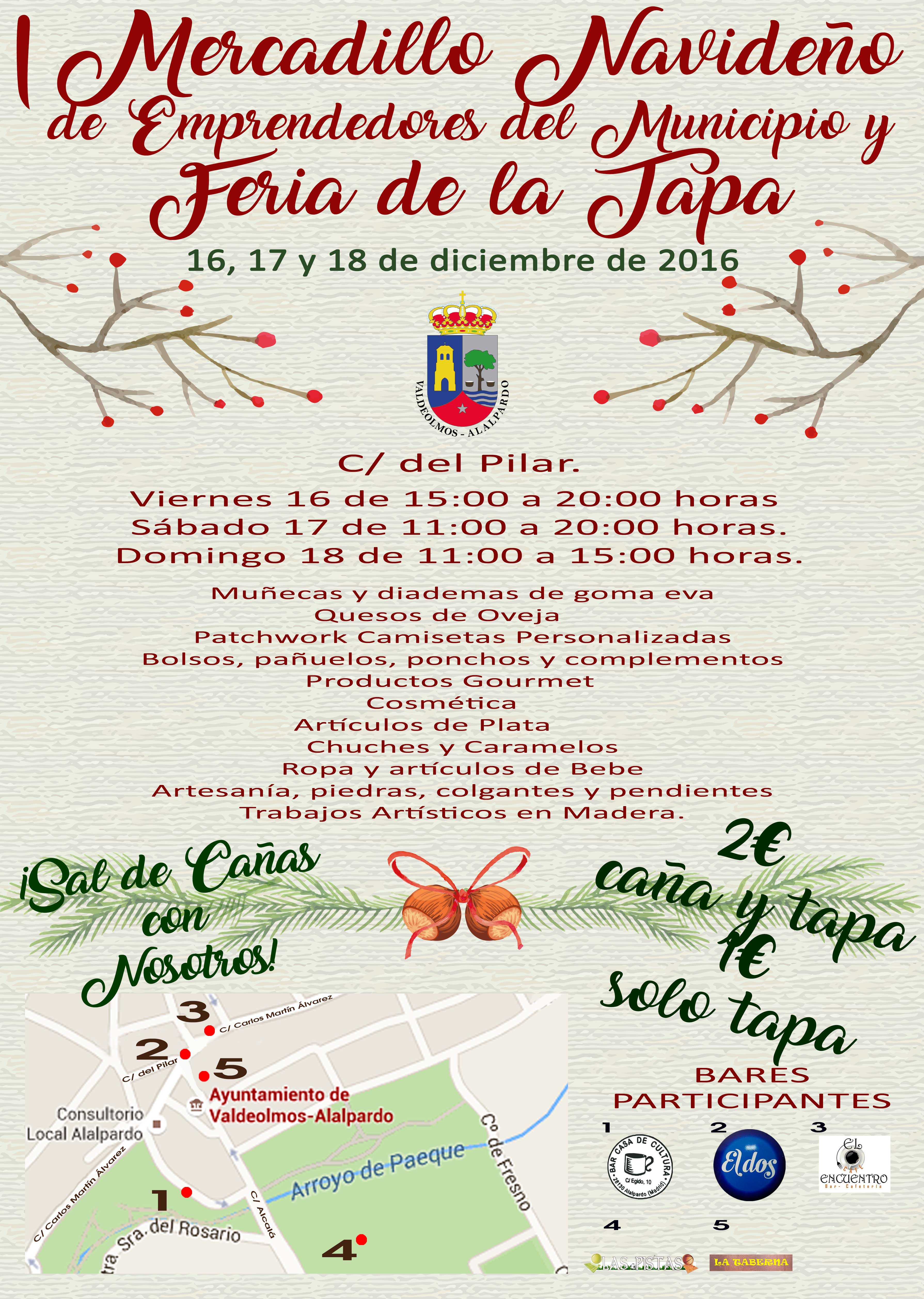 Debido a las condiciones climatológicas hoy viernes día 16 queda cancelado el I MERCADILLO NAVIDEÑO de Emprendedores del Municipio Y FERIA DE LA TAPA.