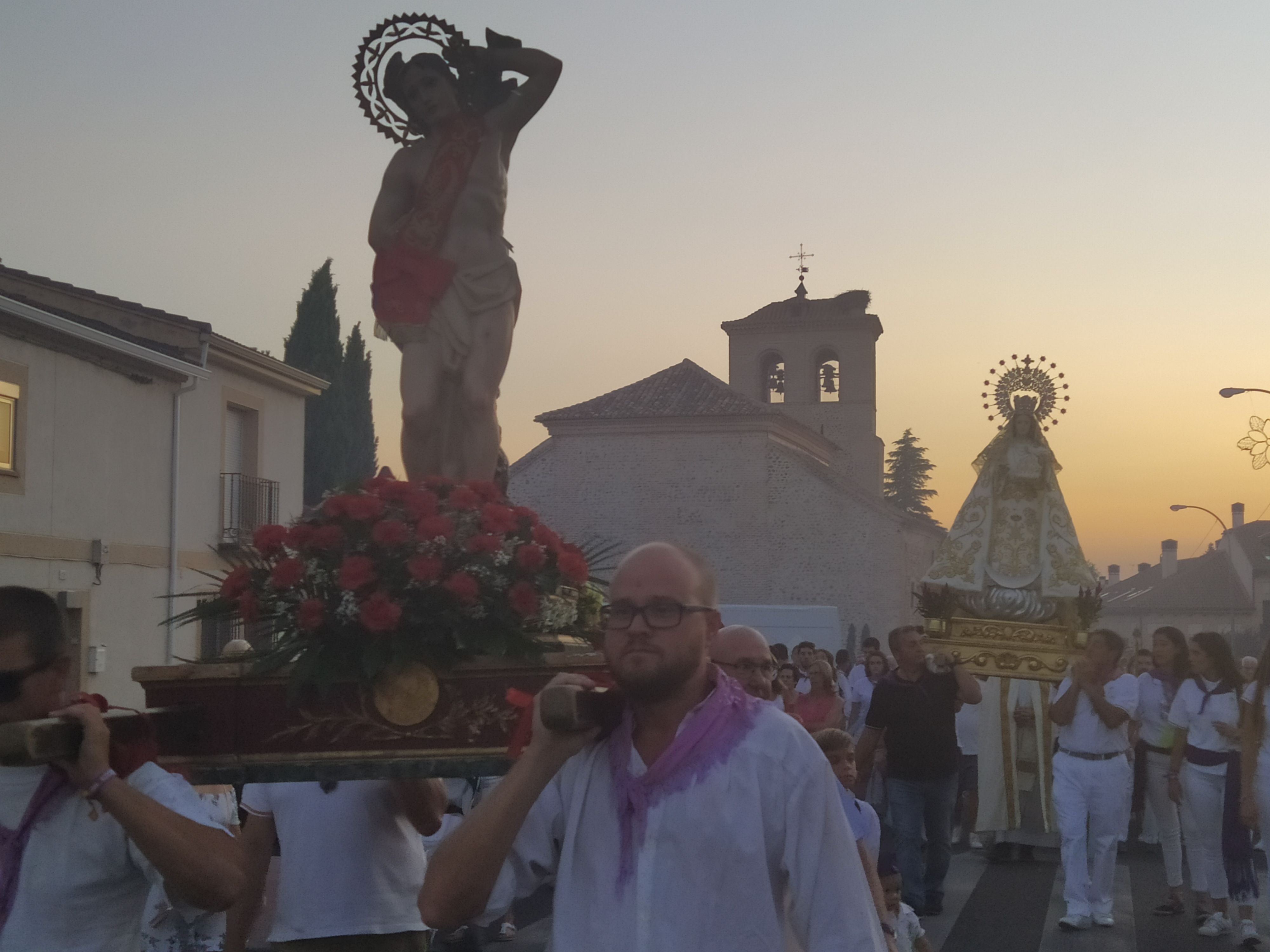 Los patrones de Alalpardo salieron en procesión como cada año. Los vecinos los sacaron de la iglesia la tarde del sábado 24 de agosto. Primero salió San Sebastián, después la Virgen.