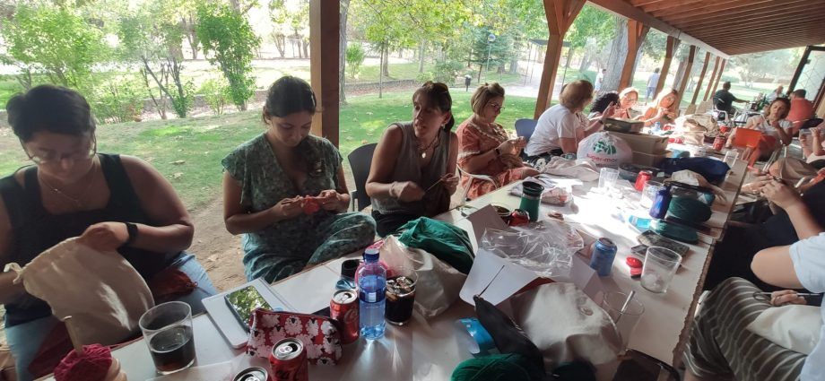 Más de 25 mujeres volvieron a juntarse frente al Paeque para tejer juntas.