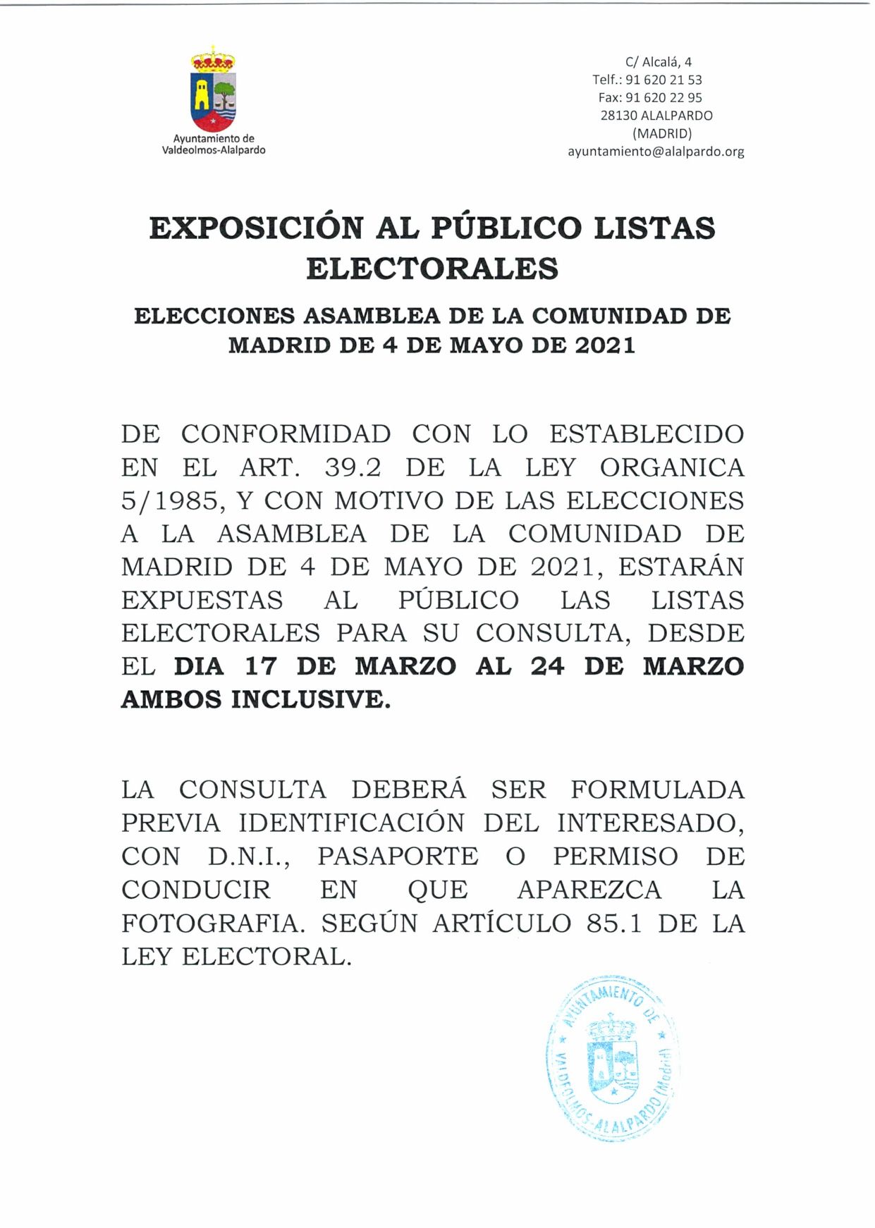 Listas Electorales expuestas al público de cara a las Elecciones de la Comunidad de Madrid
