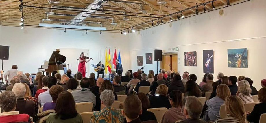 Lleno absoluto en la Sala Al-Artis para volver a ver a la virtuosa del violín Elena Mikhailova. El público que llenó la Sala del Arte vibró con las 12 piezas musicales. Una fusión perfecta entre violín, castañuelas, piano, guitarra y cajón.