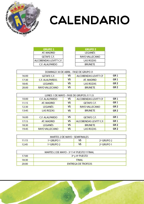 Los 8 equipos y el Calendario del Torneo ‘VICENTE DEL BOSQUE’ » Calendario