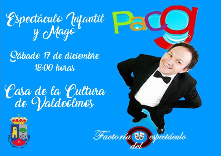 Paco G era el nombre de su abuelo y él lo ha tomado como nombre artístico. Es mago, es clown, es humorista y es monologuista. Un auténtico showman que actuará en Valdeolmos. Casa de la Cultura, sábado 17 de diciembre a las 18:00 horas.