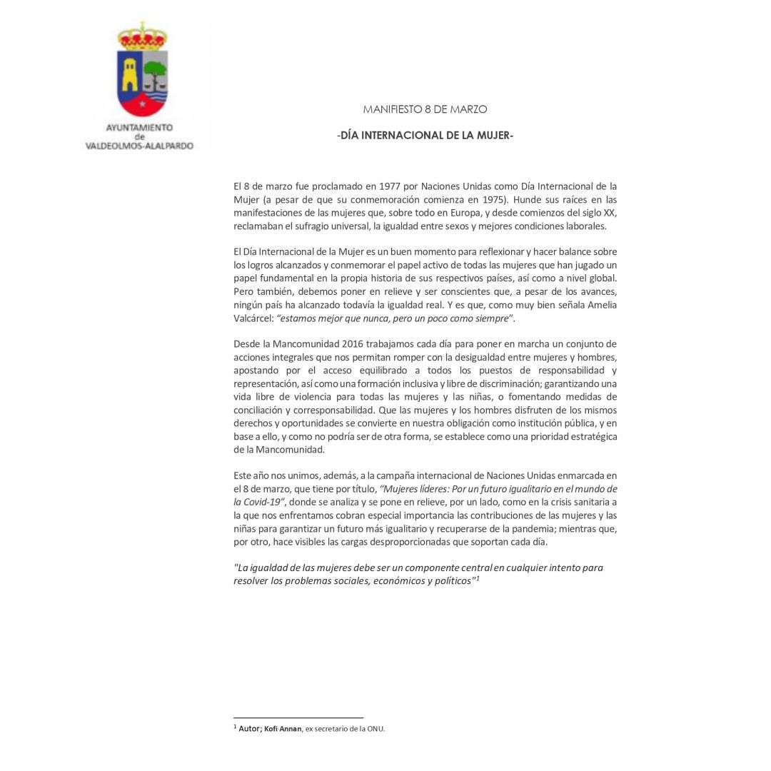 Manifiesto 8 de marzo – Día Internacional de la Mujer »