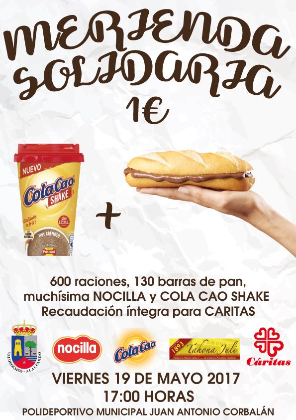 El viernes 19 de mayo tienes una cita con tus hijos cuando los recojas del colegio porque habrá MERIENDA SOLIDARIA en el polideportivo.