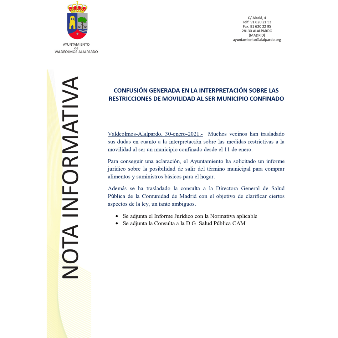 Nota Informativa: Confusión en la interpretación sobre las restricciones de movilidad