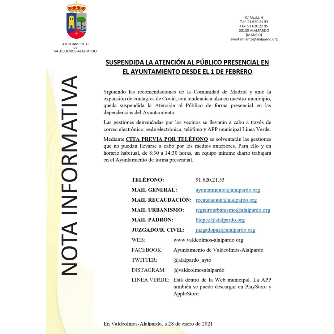 Nota Informativa: Se suspende la atención al público presencial en el Ayuntamiento » Ayuntamiento teletrabajo