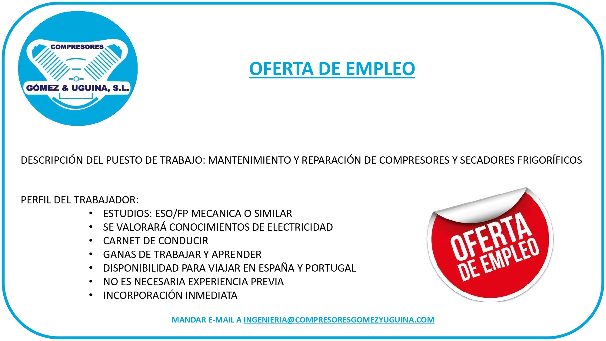Oferta de empleo: Mantenimiento y reparación de compresores y secadores frigoríficos »