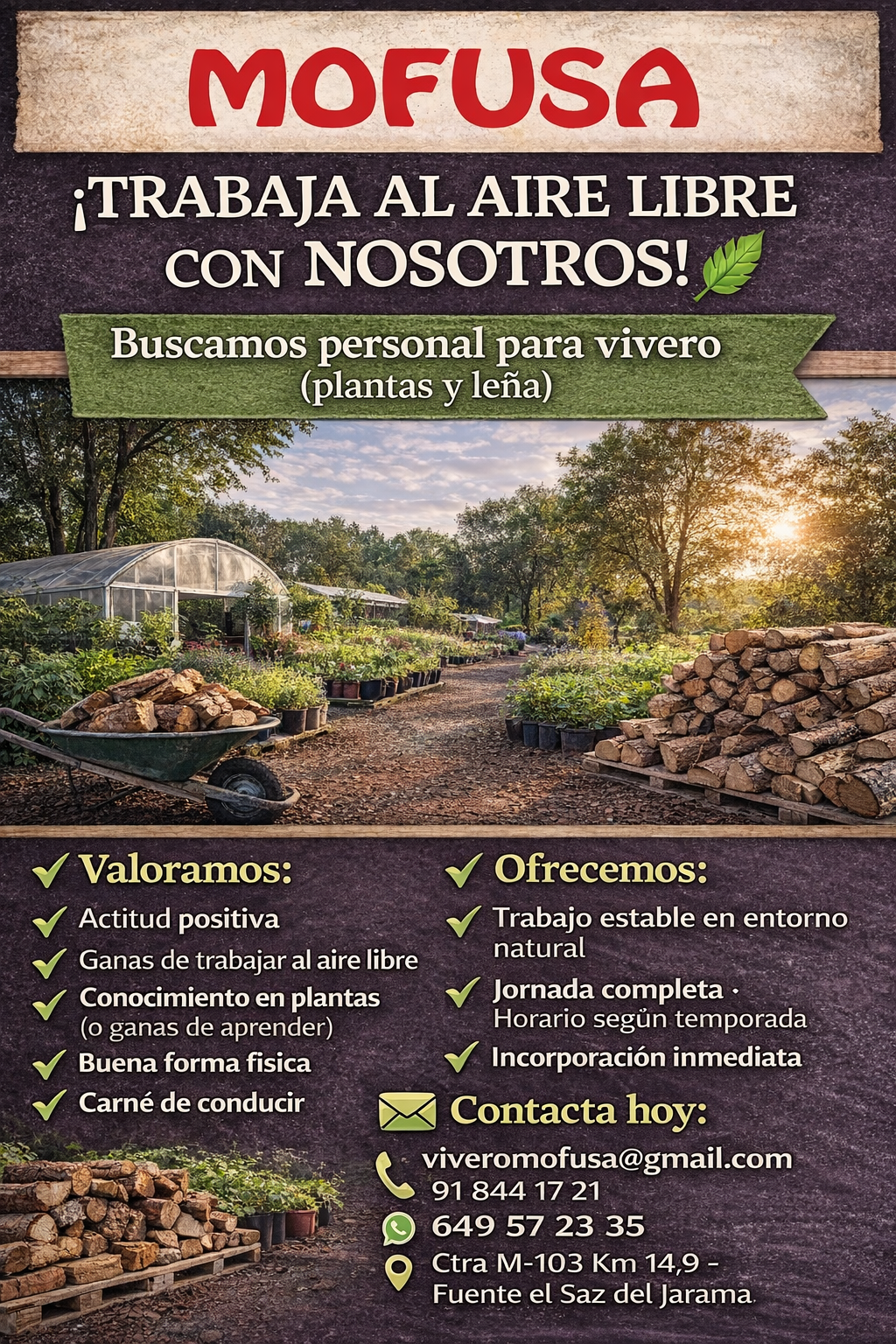 Oferta de empleo: Trabaja al aire libre en Fuente El Saz »